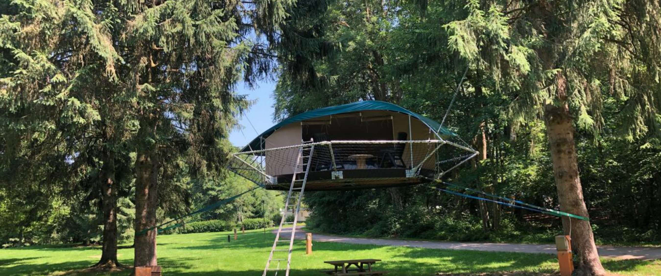Ce petit flanqué familial arboré est situé le long de la Mellier, une rivière clapotante, à la lisière du Parc Naturel de la Haute Sûre. Vous séjournerez au cœur des vastes forêts ardennaises typiques, tout droit sorties d’une brochure touristique. N’hésitez pas à étudier les arbres de plus près, par exemple depuis une tente suspendue, où vous pourrez dormir confortablement à deux. Impossible d’être plus proche de la nature !