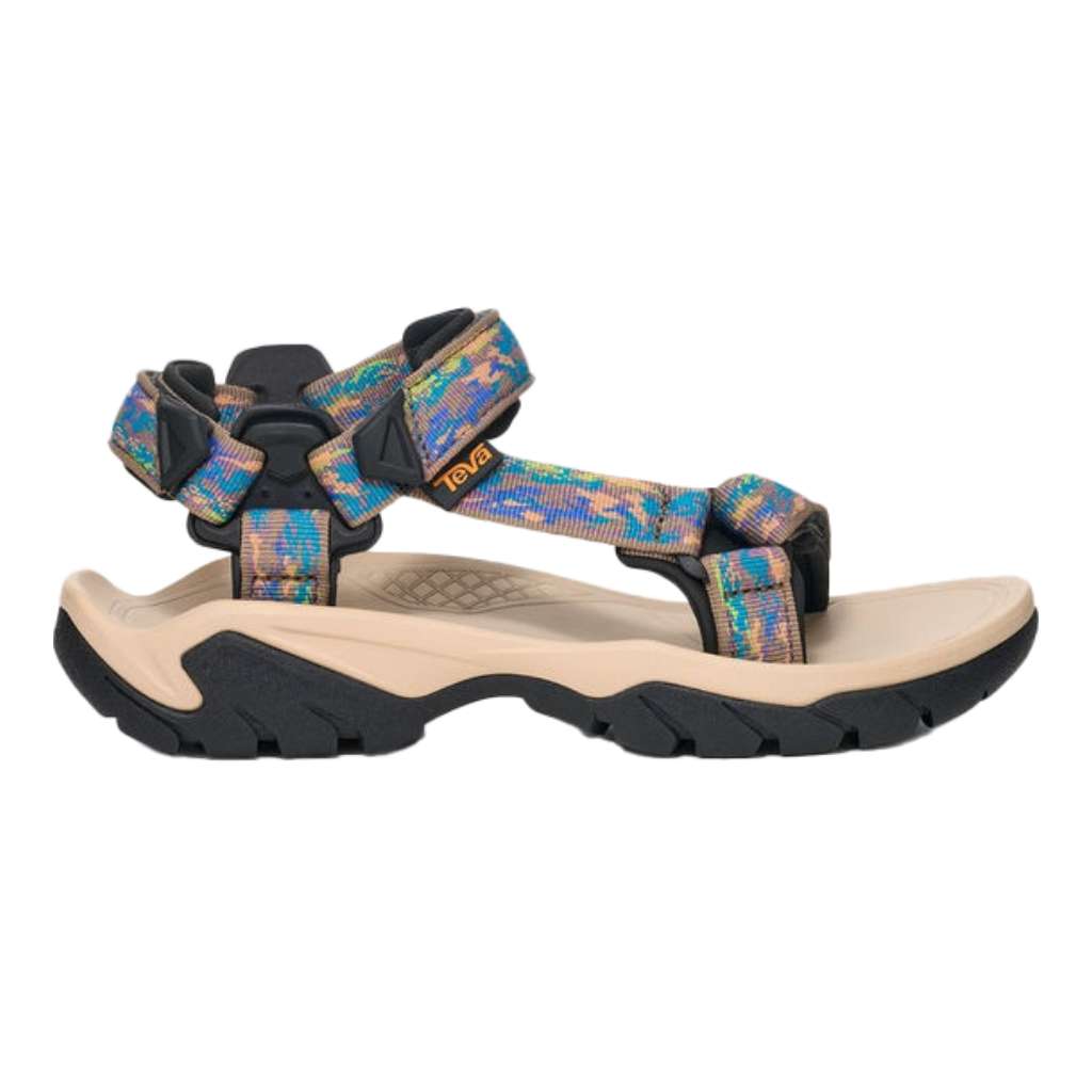 « Une randonnée de plusieurs jours en vue ? Optez pour les Terra Fi 5. Ce sont les sandales de marche idéales pour tous les terrains grâce à leur semelle intermédiaire en PU amortissante et à leur semelle extérieure résistante à l’usure. »